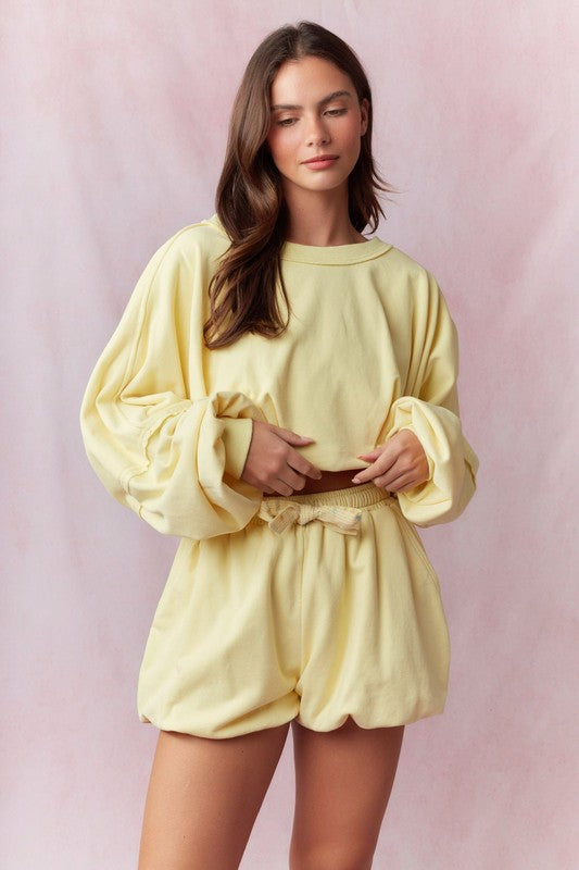 Butter Yellow Bubble Hem Cropped Sweatshirt