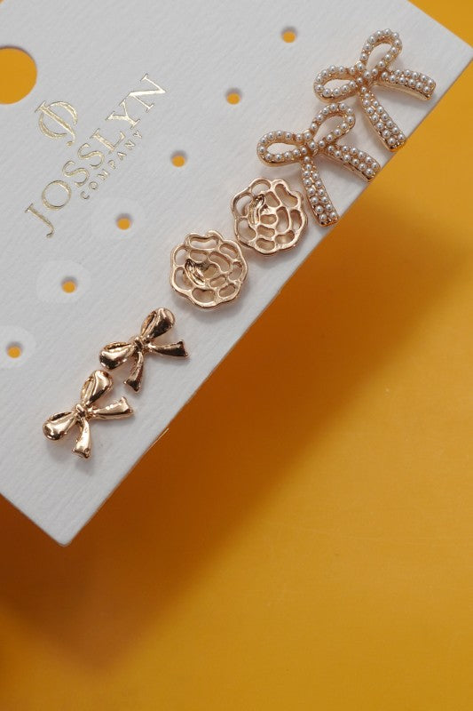 Flowers and Ribbons Trio Earring Set