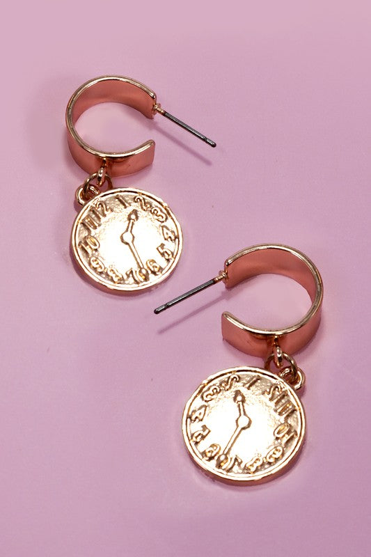 Time is up huggie hoop earrings